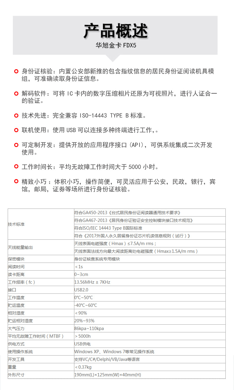 (*由于產(chǎn)品升級或其他原因,華旭身份證閱讀器產(chǎn)品實際參數(shù)有可能變更,以實際產(chǎn)品為準(zhǔn)。本文中的所有陳述、信息和建議也不構(gòu)成任何明示或暗示的擔(dān)保)