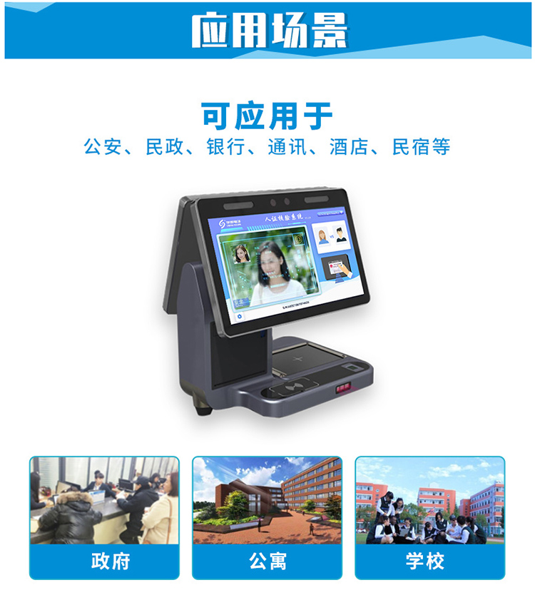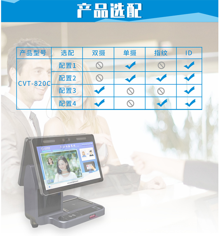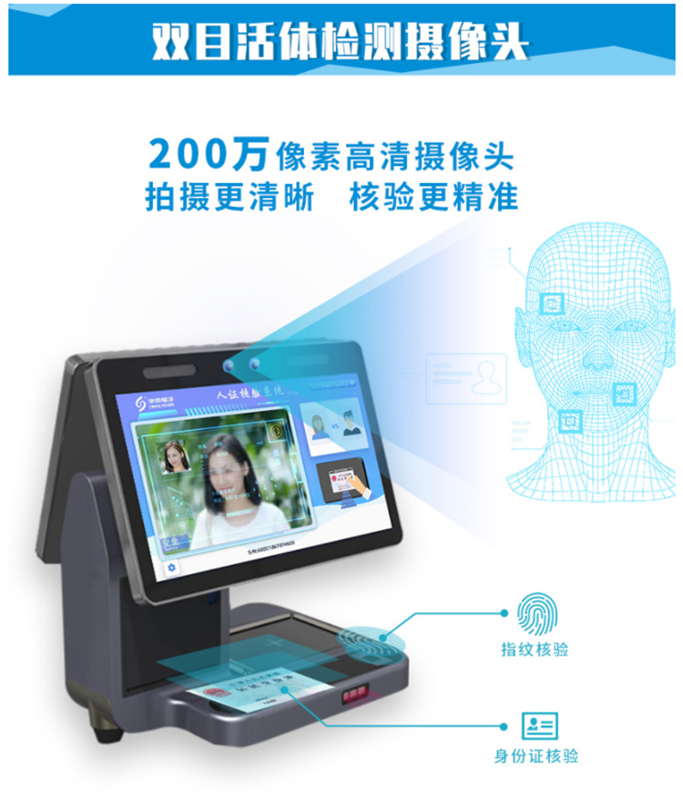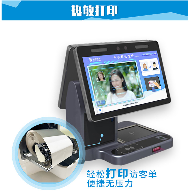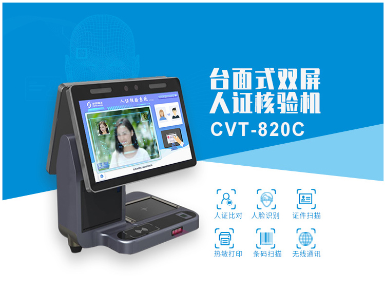 華視cvt-820c雙屏訪客機用于人證比對,人臉識別,證件掃描,熱敏打印,條碼掃描,無線通訊