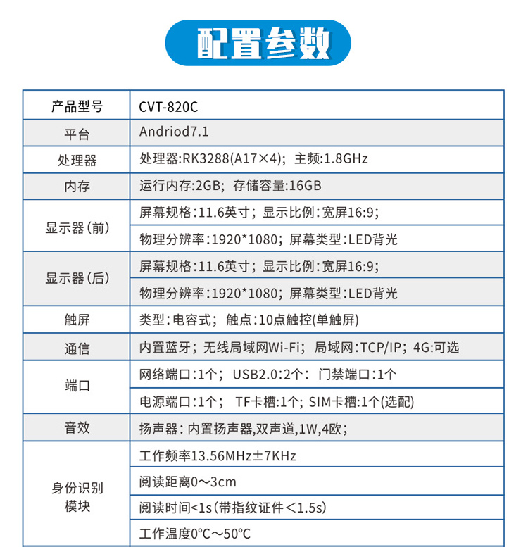 (*由于產品升級或其他原因,華視cvt-820c雙屏訪客機產品實際參數有可能變更,以實際產品為準。本文中的所有陳述、信息和建議也不構成任何明示或暗示的擔保)